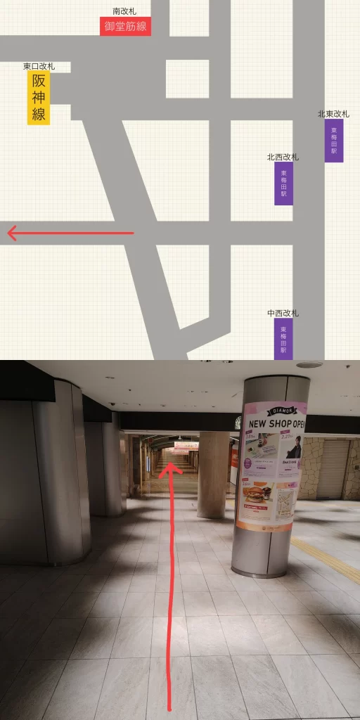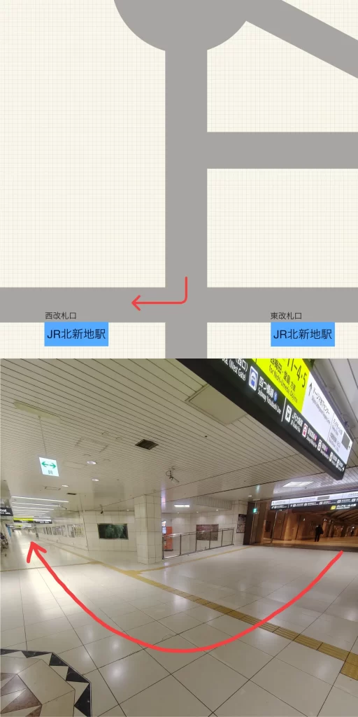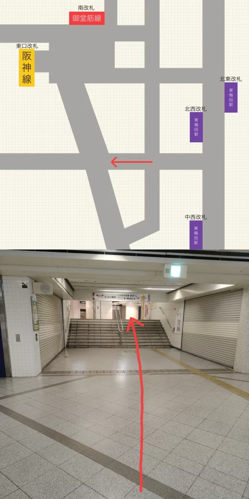 谷町線東梅田駅からJR北新地駅までの乗り換え方法【写真と地図でわかる!】